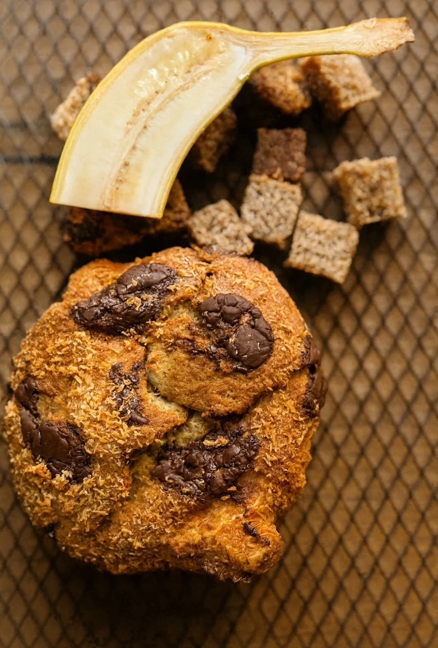 Flaky layers wrapped around rich banana bread, dark chocolate, and a sprinkle of toasted coconut.