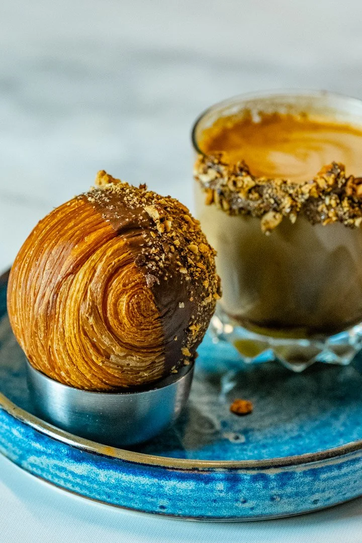 Croissant sphere | nutella cream cheese filling | toasted hazelnut | 70% dark chocolate